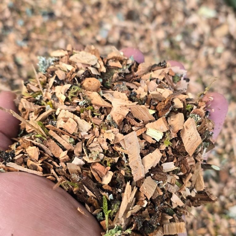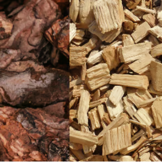 Frische Hackschnitzel sind kohlenstoffreich. Um sie zu kompostieren oder im Beet zu nutzen, benötigen sie Stickstoff (grünes Material/Dünger).